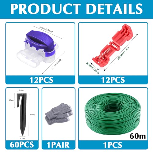 - 【Packungsinhalt】Das begrenzungsdraht mähroboter kit enthält 60m Begrenzungskabel , 60 Erdnägel, 12 Kabelanschlüsse,12 Anschlussklemmen Und ein Paar Handschuhe.Ein umfassendes rasenmäher-kabel set zum Definieren, Erweitern oder Anpassen der zu mähenden Bereiche.