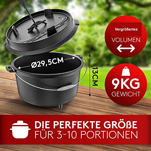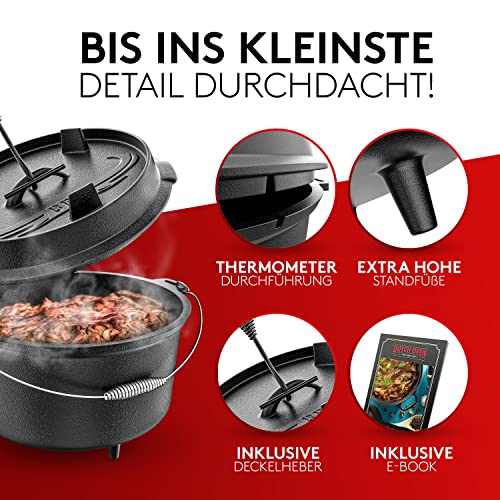 ![BBQ Dutch Oven [Das Original] - Dutch Oven Set [7L] – Eingebrannter Feuertopf aus Gusseisen mit Füßen & Deckel – Ausgezeichnet von Vergleich.org – inkl. Deckelheber - mit e-Book – Bild 5](https://m.media-amazon.com/images/I/51XxSqid1UL.jpg)
