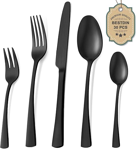 Thank you for reading this post, don't forget to subscribe!Details: Bestdin Besteck Set 6 Personen, 30 teilig Edelstahl Besteckset Schwarz Matt, Essbesteck Set mit Messer Gabel Löffel, Hochwertiges Edelstahlbesteck, Spülmaschinenfest.