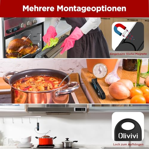 - IPX4 Wasserdicht & Magnetisch – Das Thermometerkochen ist wasserdicht, wodurch es sich auch ideal für Flüssigkeiten wie Tee, heiße Milch oder Badewasser eignet. Außerdem lässt es sich auch schnell und einfach mit Wasser reinigen. Dank des integrierten Magneten lässt es sich außerdem an magnetischen Oberflächen anbringen