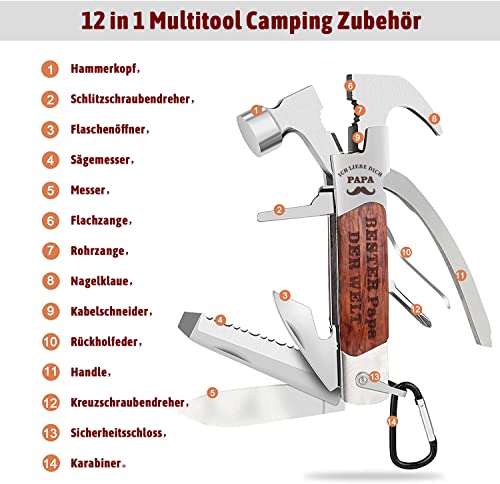, Jeelar 12-in-1 Multitool-Hammer, Edelstahl, perfektes Papa Geschenk zum Geburtstag, Vatertag, Weihnachten – Geschenke für Papa, Bester Papa Geschenke, Geburtstagsgeschenk für…, https://www.amazon.de/dp/B08HJH2TGF/, 11.4, EUR, Besuche den Jeelar-Store,