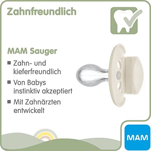 MAM Original Schnuller im 2er-Set, zahnfreundlicher Baby Schnuller aus nachhaltigen & bio-erneuerbaren Materialien, Sauger aus MAM SkinSoft Silikon, mit Schnullerbox, 16+…
