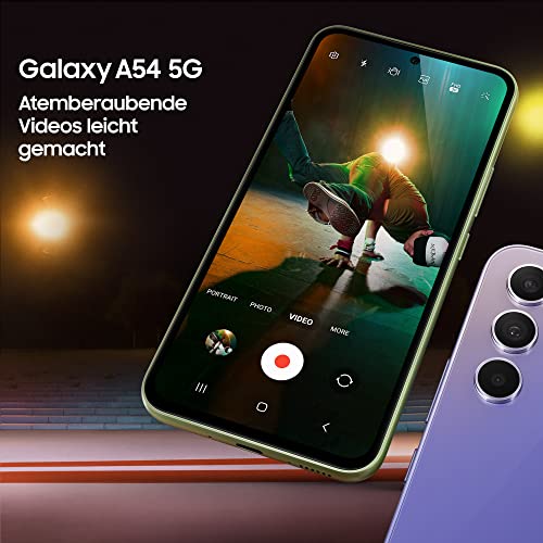- 5.000 mAh Akku-Kapazität**: Der 5.000 mAh-Akku des Samsung Galaxy A54 5G kann lange durchhalten und auch lange Nächte mitmachen. Entfalten Sie das Potenzial Ihres Samsung Galaxy: Der leistungsstarke Octa-Core-Prozessor eröffnet Ihnen viele Möglichkeiten mit hoher Leistung und großer Kapazität.